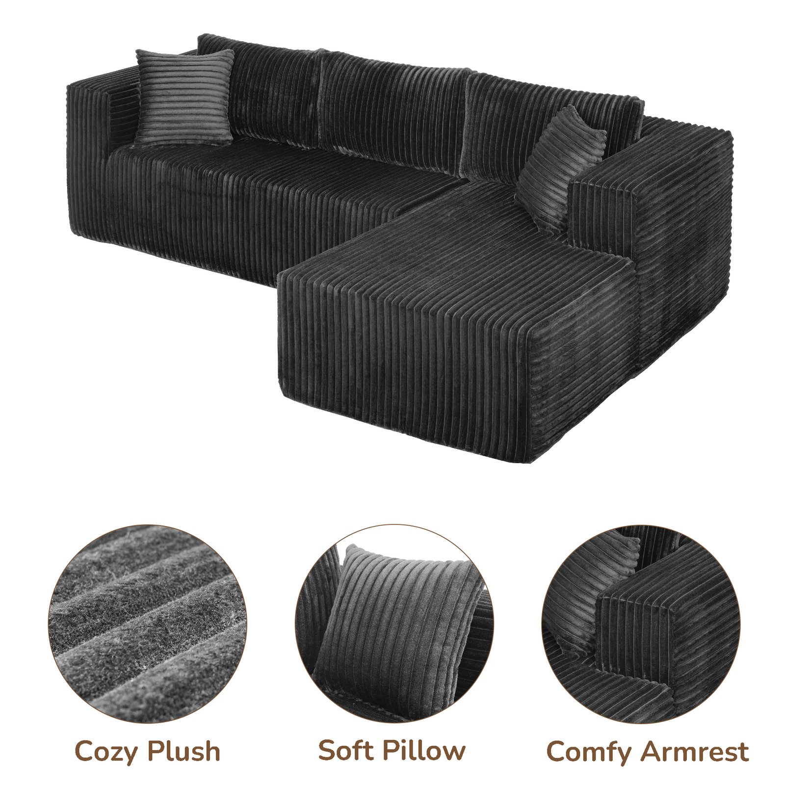 105″ L-Shaped Modular Compression Sofa, Plush Upholstery, All-Foam Structure, Vacuum-Packed, Space-Saving for Living Room, Bedroom, Apartment