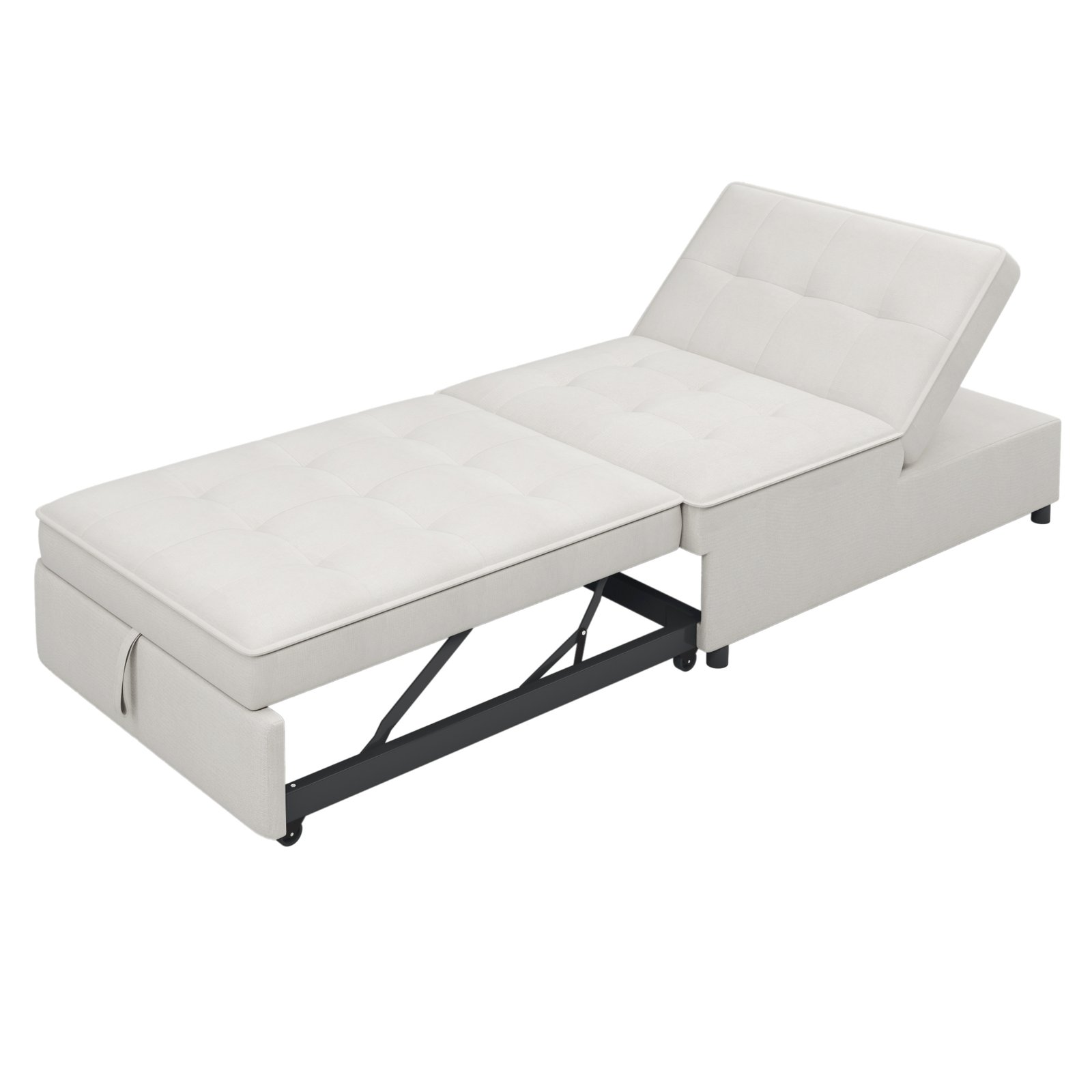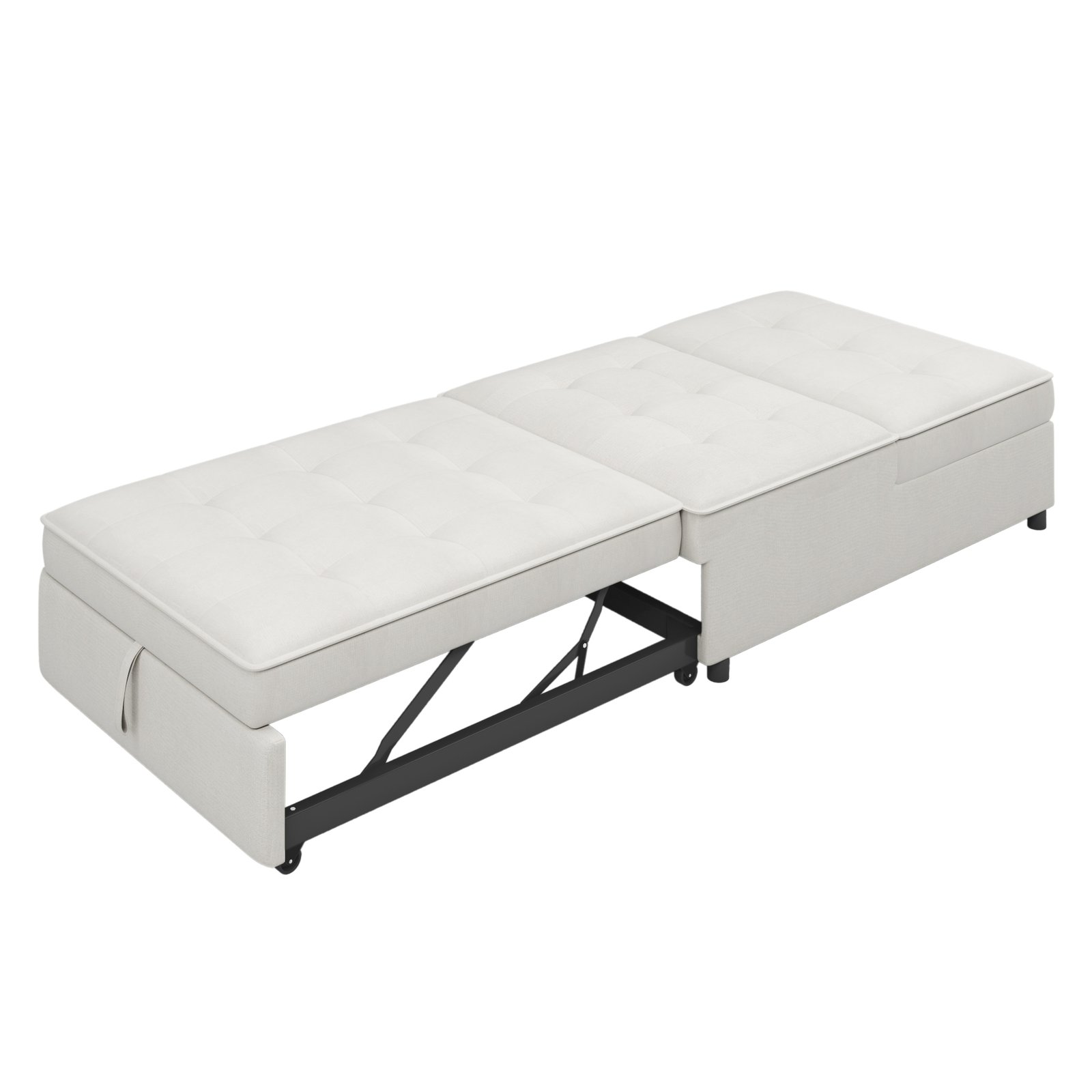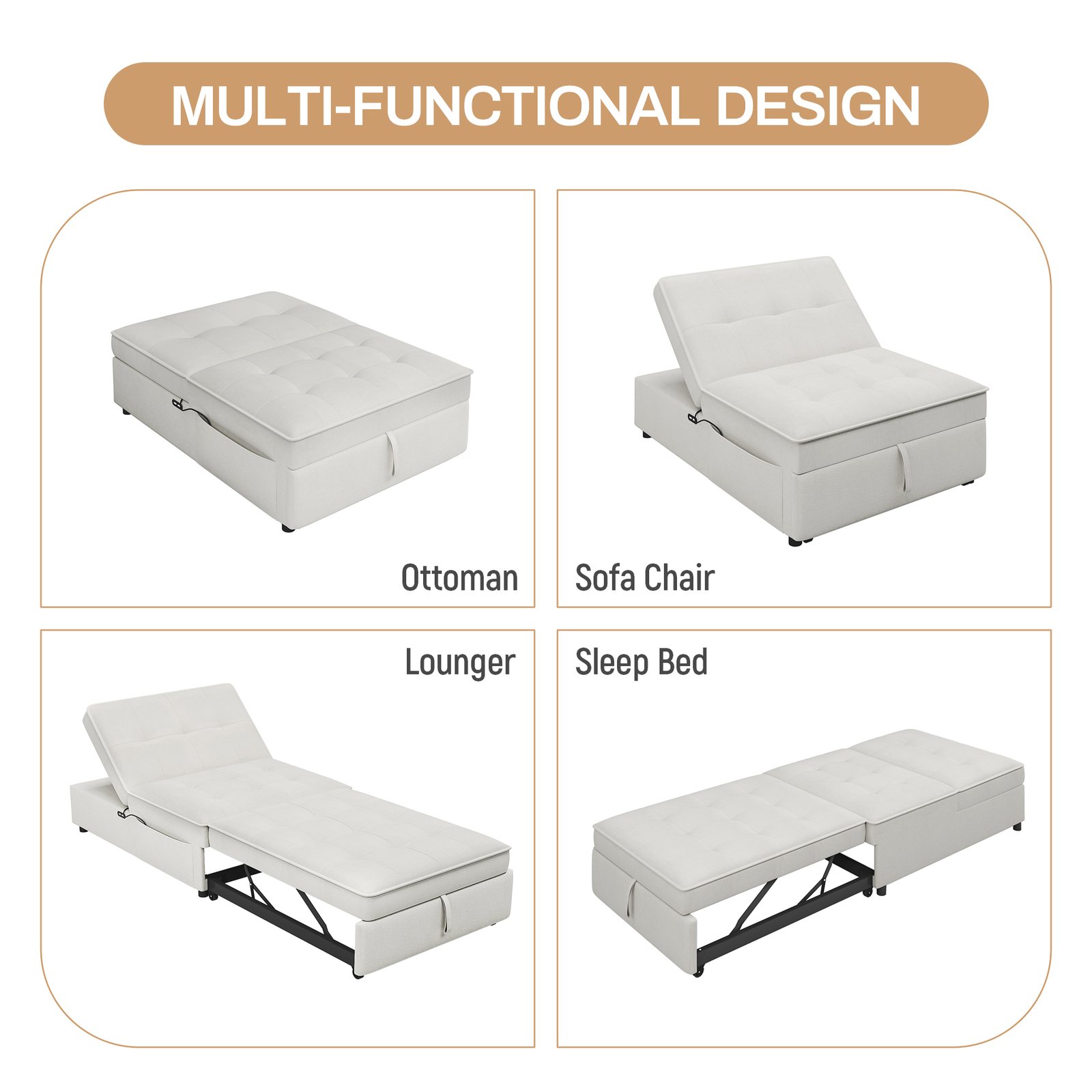 4-in-1 Sofa Bed, Chair Bed, Multi-Function Folding Ottoman Bed with Storage Pocket and USB Port for Small Room Apartment,Living Room,Bedroom,Hallway,White