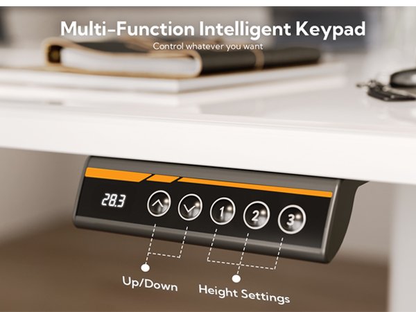 • Smooth Electric Height Adjustment – Enjoy effortless customization with a powerful motor that quietly adjusts the desk height from 28.3″ to 46.5″ (including the 2.36″ desktop thickness). With 3 programmable presets, you can quickly switch to your ideal height for optimal comfort.