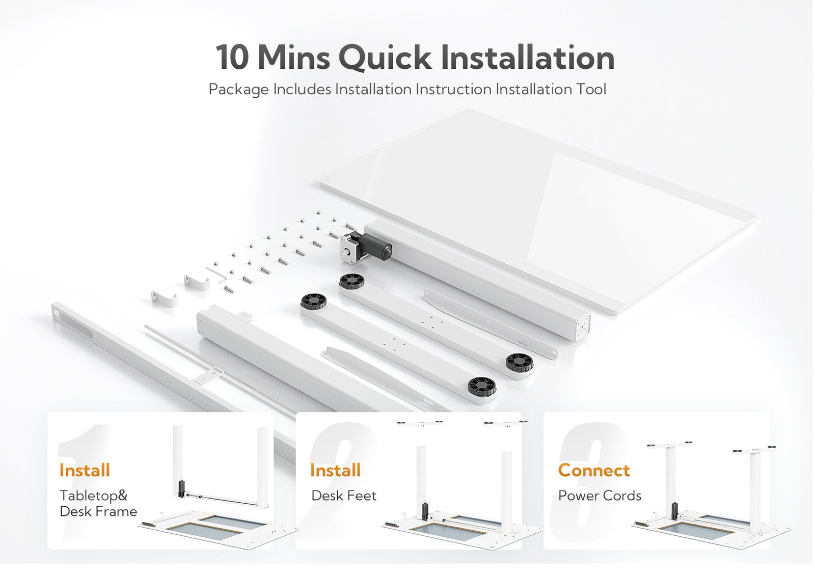 • Quick & Easy Assembly – Setting up your glass standing desk is simple. Just attach the legs to the tabletop, connect the power cord, and you’re ready to go! The desk boasts a strong weight capacity of up to 132 lbs, ensuring reliable support for your essentials.