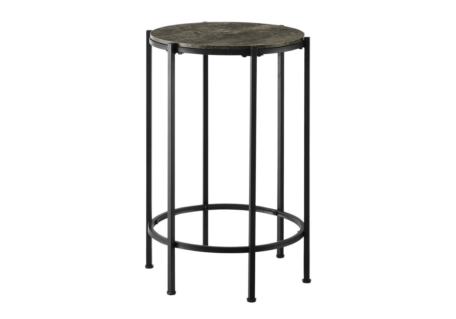 - Stylish and trendy 24 h accent table with a dark bronze laminate top and sleek black metal legs.