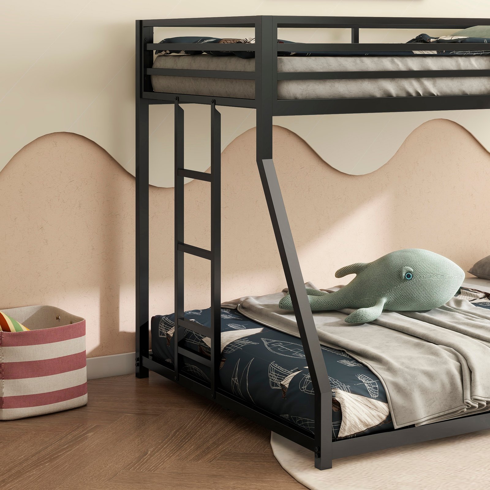 Adam Sturdy Twin over Full Bunk Bed Metal Black for Kids and Adult, Low Profile Twin over Full Bunk Bed with Ladder and Guardrails, Easy Climbing, Beds for Bedroom, Same as original B083124171