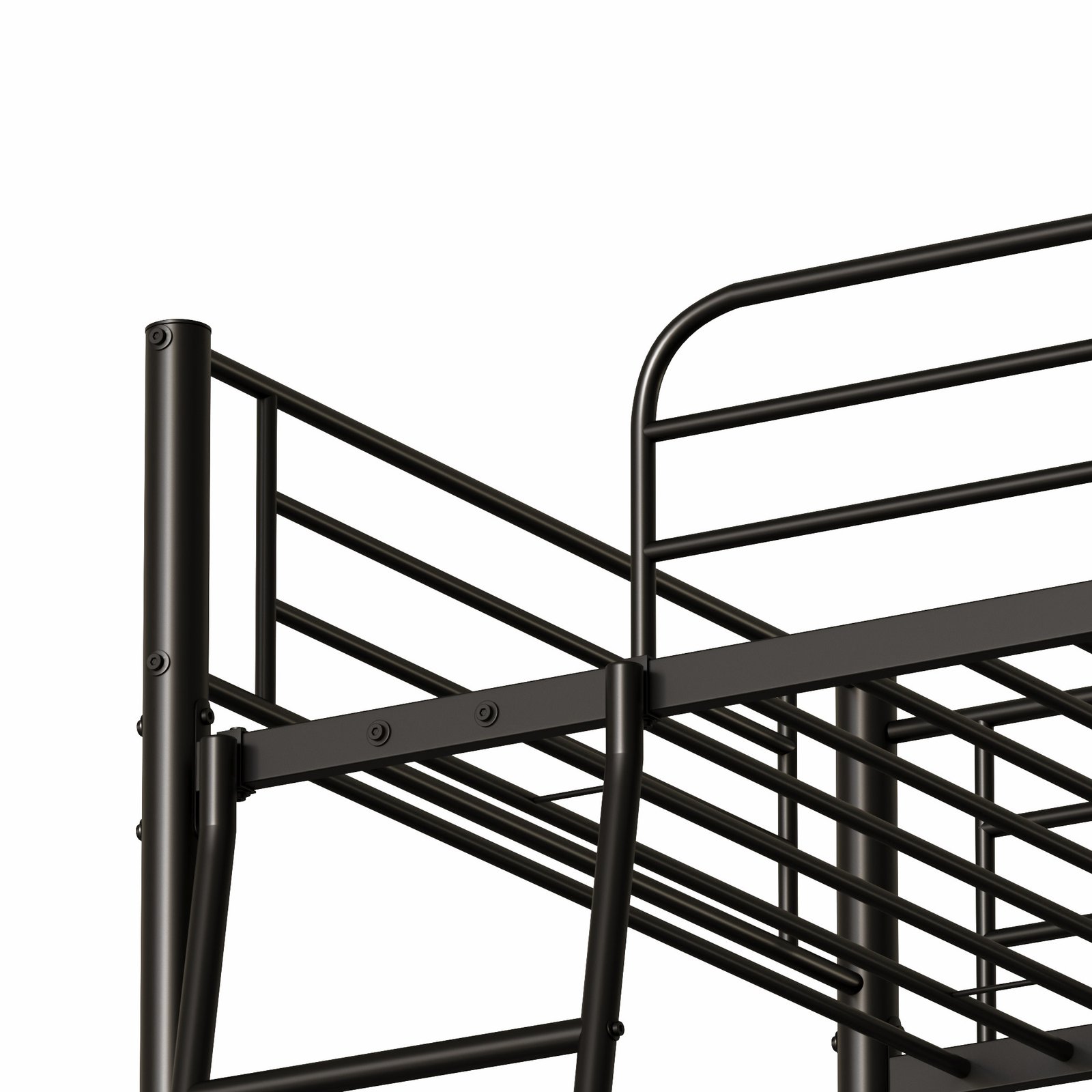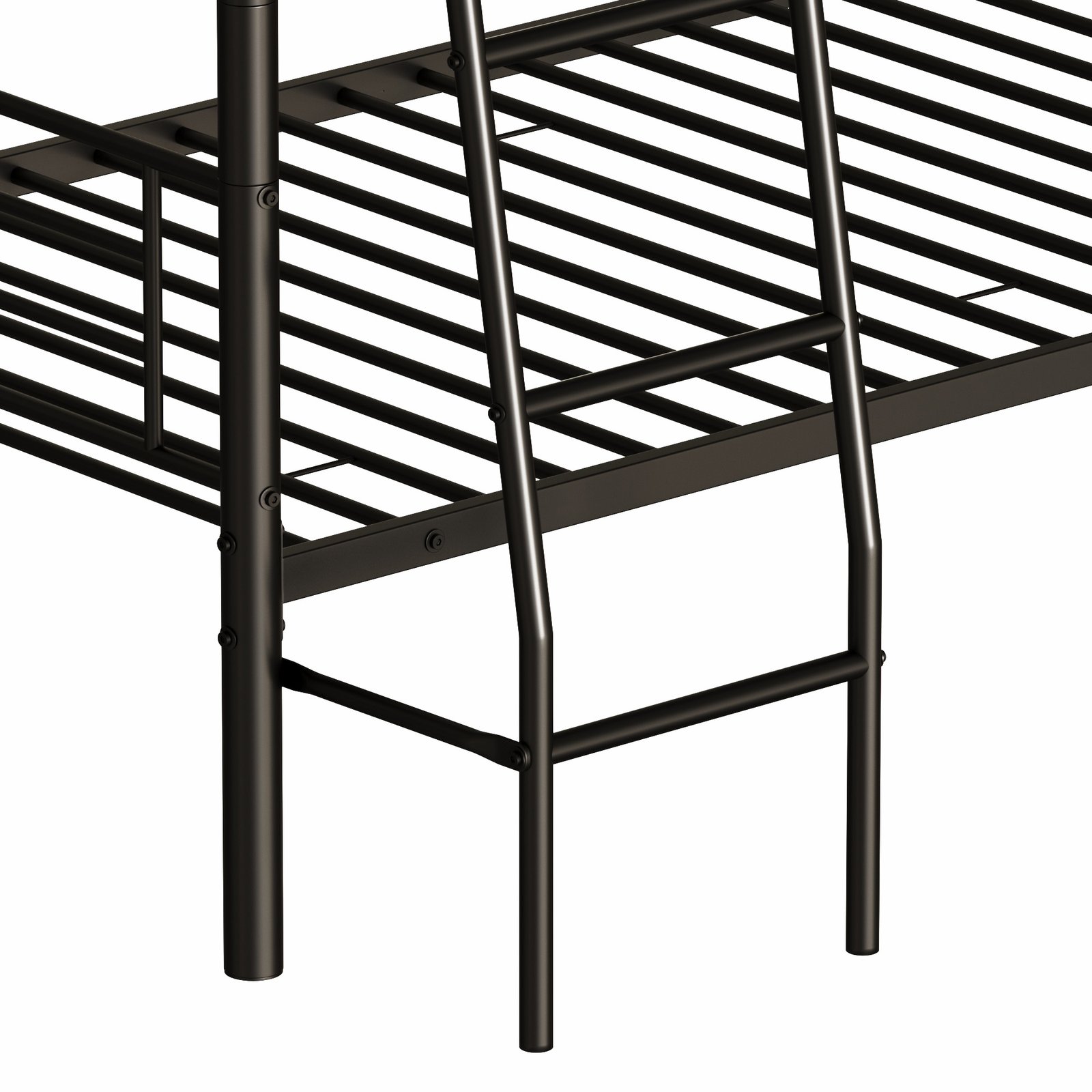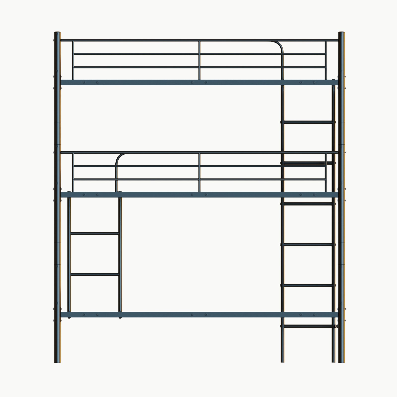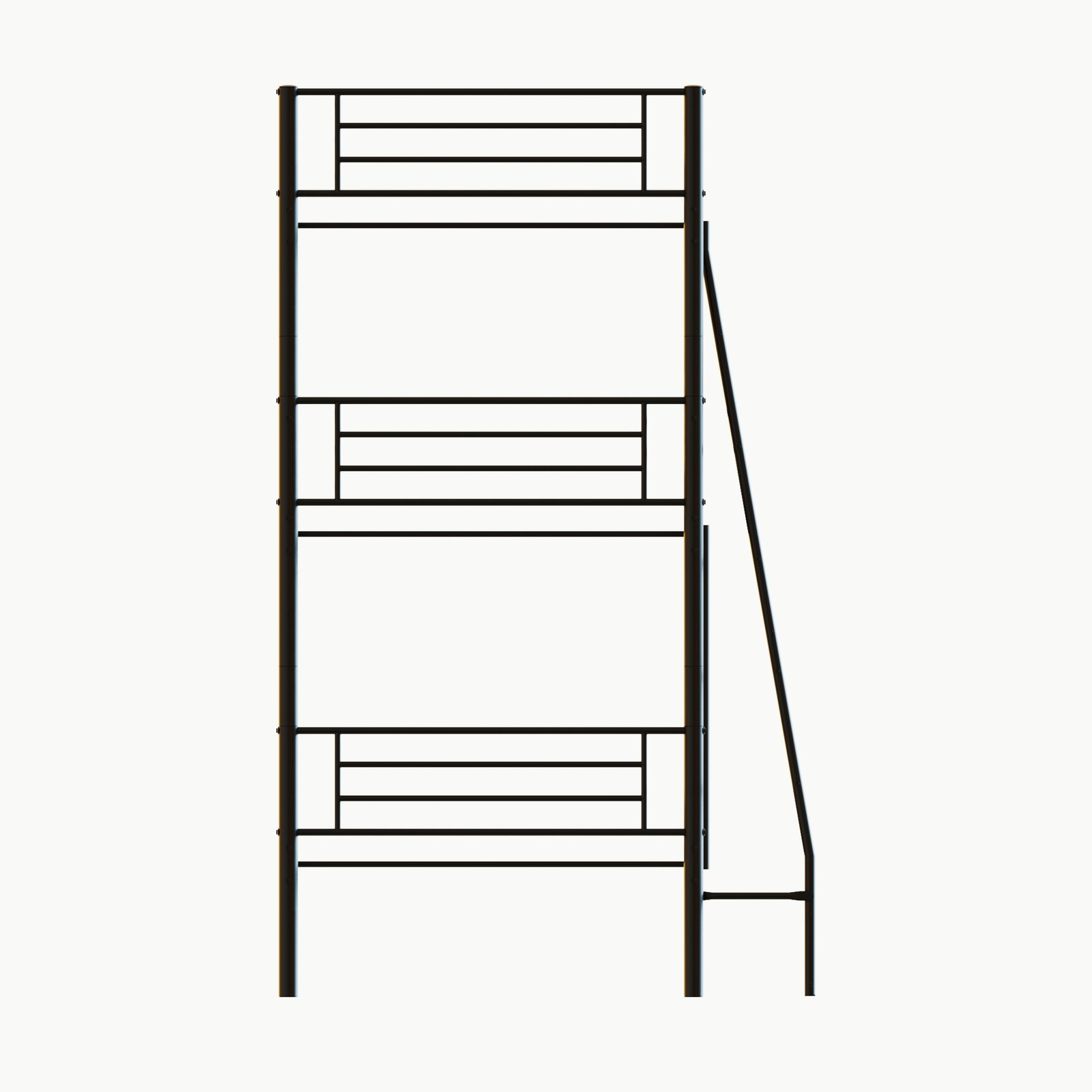 - [Multifunctional triple bunk bed] This triple bunk bed is ideal for families with multiple members. The two-decker design saves space, and two ladders are installed on the bed for easy access to the top and middle beds. The three stacked beds are made of heavy metal and are safe, strong and stable.