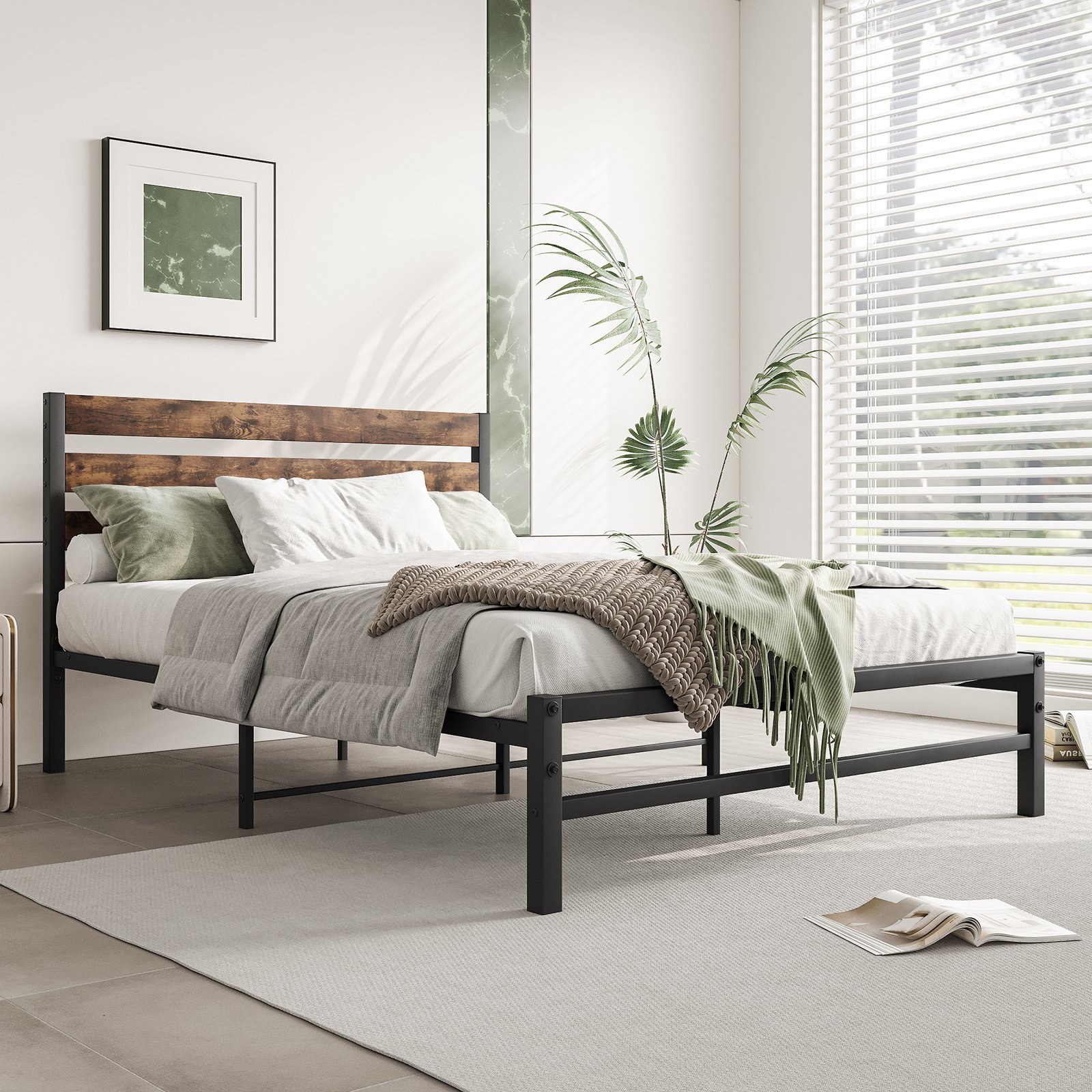 Full Size Platform Bed Frame with Rustic Vintage Wood Headboard, Strong Metal Slats Support Mattress Foundation, No Box Spring Needed Rustic Brown
