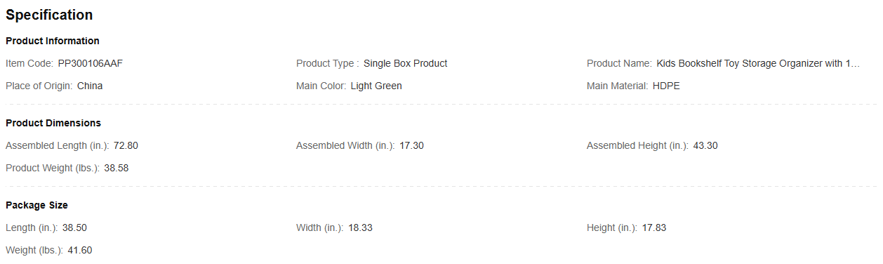 - Simple and Practical – Each horizontal row of the bookshelf can provide a total load capacity of about 20 pounds. making it perfect for everyday storage needs. Overall assembly size: 72.8” x 17.3” x 43.3”, which efficiently helps free up more space in the home for children’s daily play.