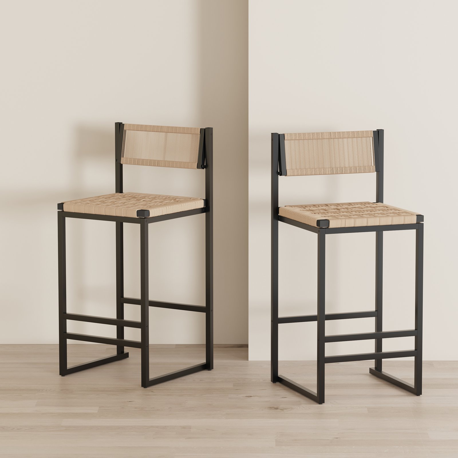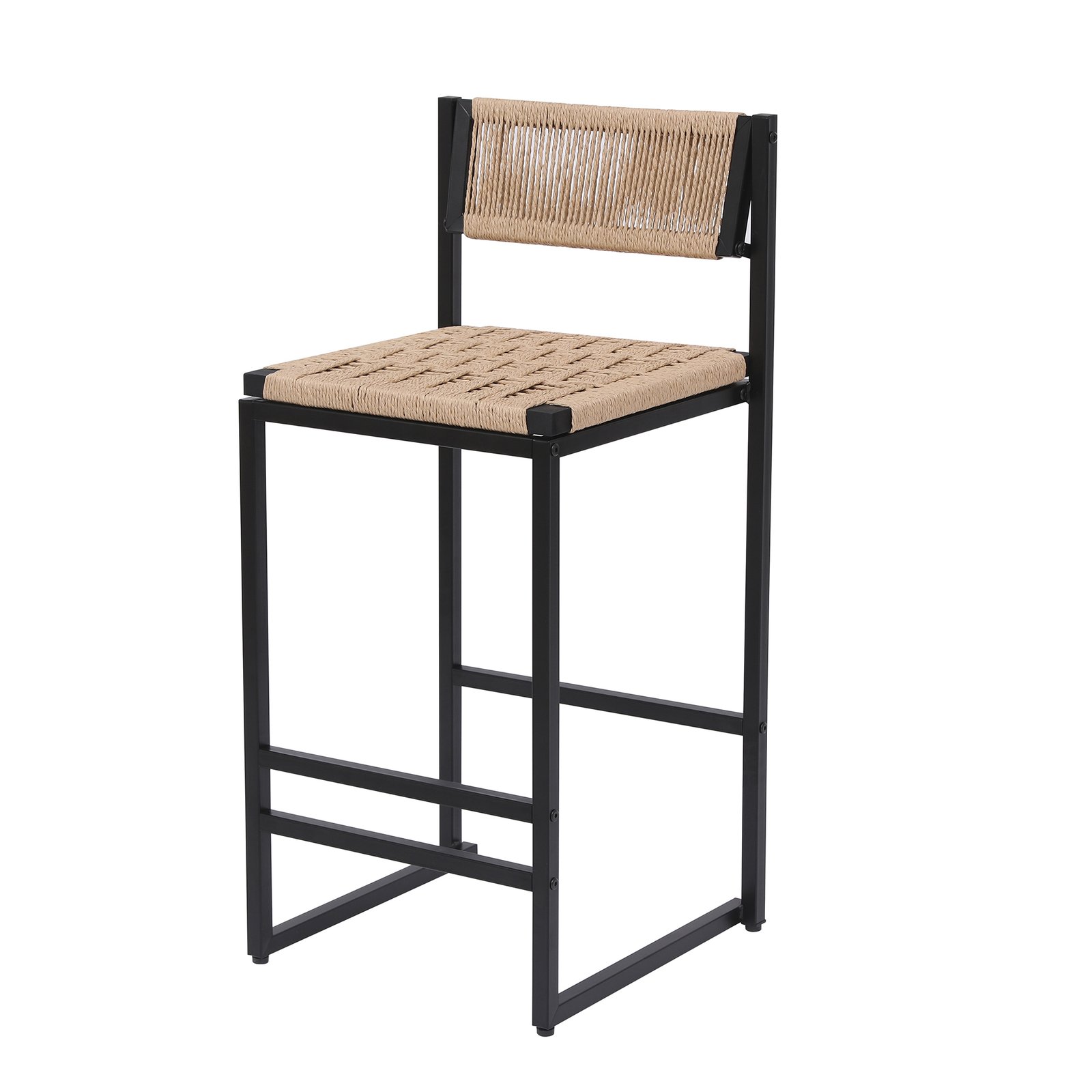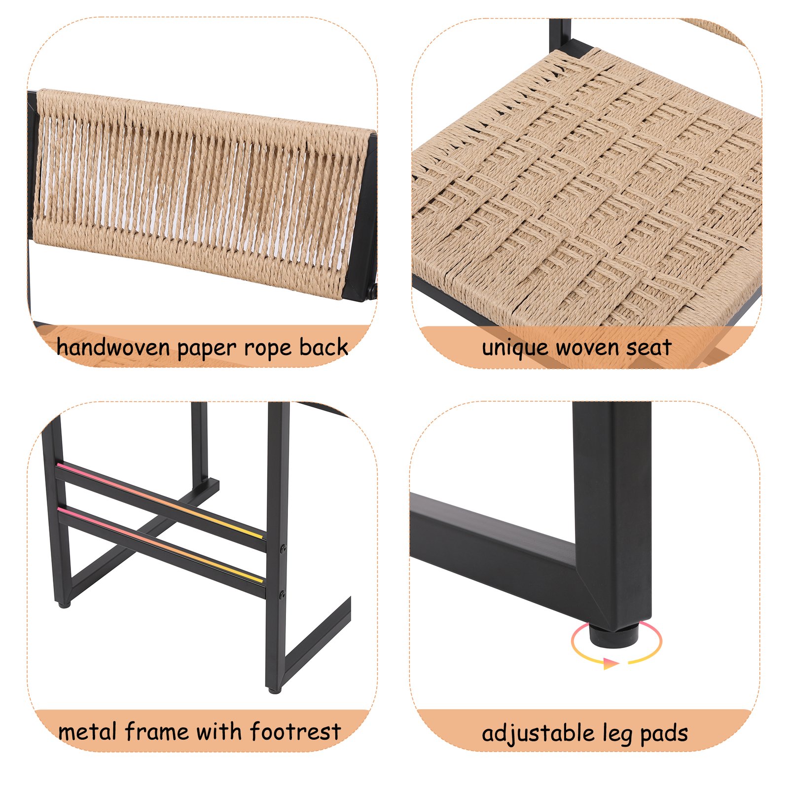 - Durable & Reliable: Our kitchen stool features a sturdy black metal frame and a woven natural paper rope seat, ensuring long-lasting use. Anti-slip screws provide stability and lasting support for everyday use.