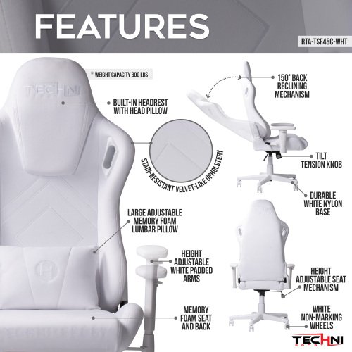 Techni Sport TSF45C Velvet Memory Foam Gaming Chair – White