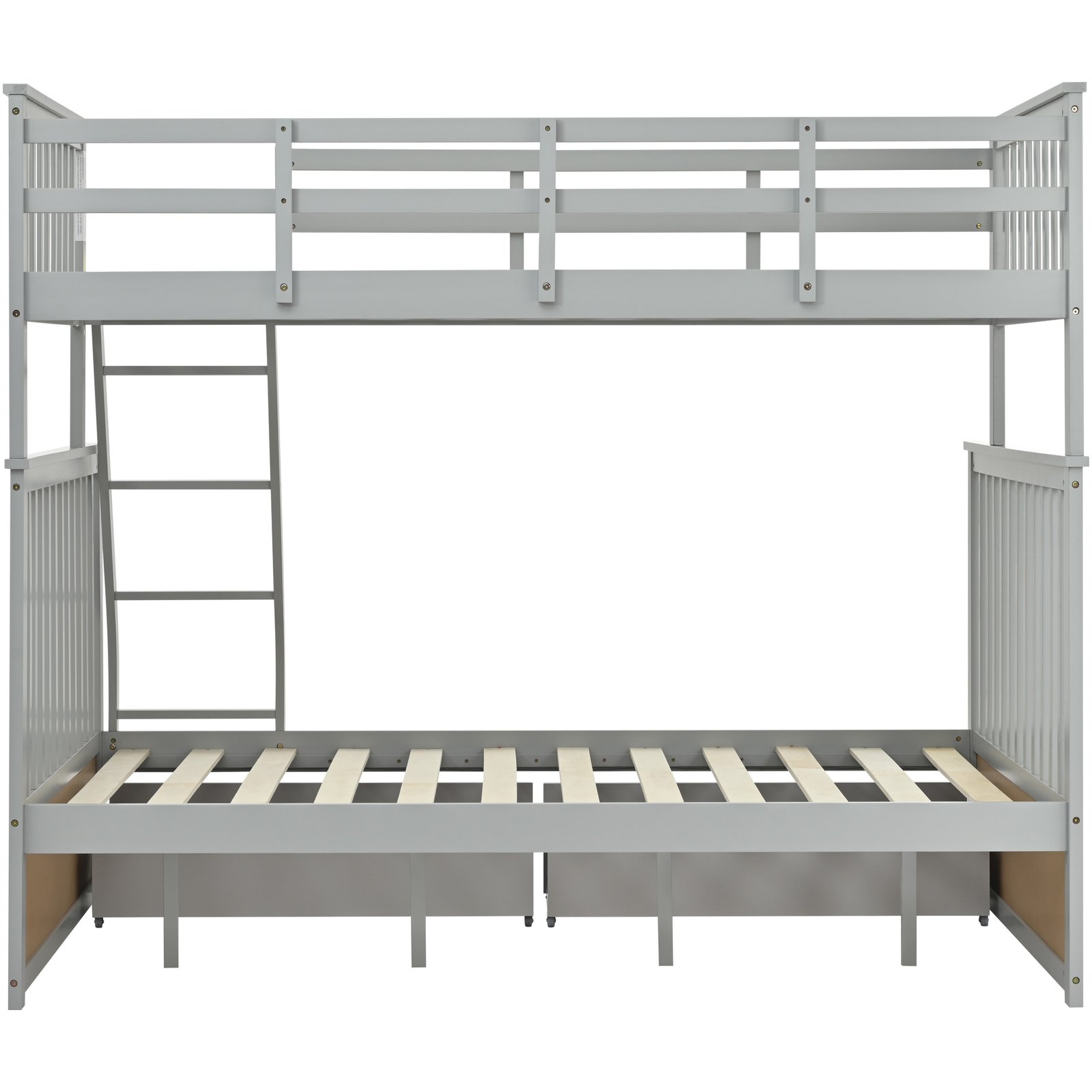 Twin Over Full Bunk Bed with Storage Drawers, Wooden Bunk Bed with Ladder and Safety Guard Rails –Gray